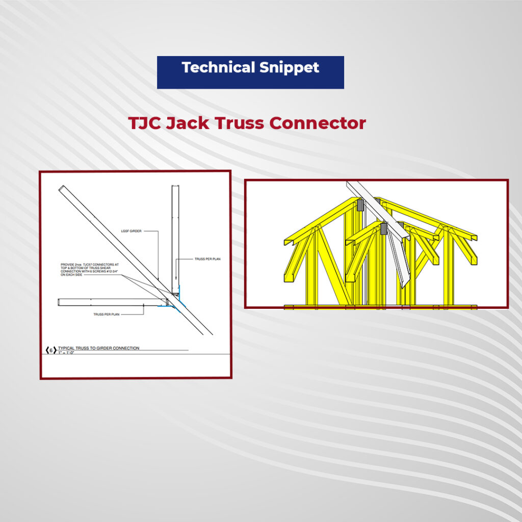 TJC is a versatile connector for jack trusses. Adjustable from 0 degree to 85 degree (shipped with 67.5 bend). Nail hole locations allow for easy installation. Minimum nailing option on TJC37 provides faster installation and lower installed cost.